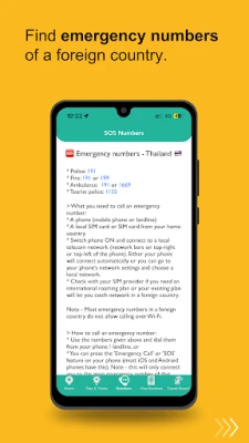 • Quick access to emergency contact numbers (police, ambulance, fire) in 160+ countries.