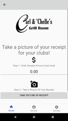 The Carl & Chelle's Grill Room mobile app delivers offers and loyalty information to on-the-go customers, giving quick access to exclusive deals, enrollment options, loyalty point balance and rewards lookup, loyalty program information, and information about our business