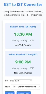 If you're looking for a quick and easy way to convert EST (Eastern Standard Time) to IST (Indian Standard Time), this tool is made just for you. No complex features, no distractions — just a clean and reliable time converter that helps you find the correct time in IST based on EST input.