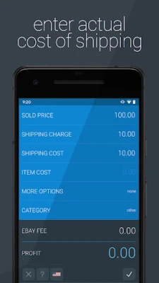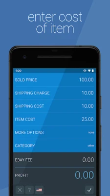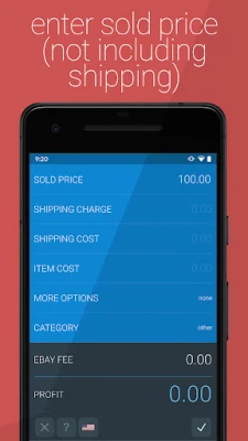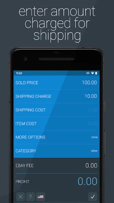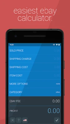 The eBay calculator app easily calculates your profits from eBay sales. This free app breaks down the fees charged by eBay and calculates your net profit based on total sale price, shipping cost, item cost, and any other applicable options.
