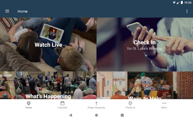 - Check in for Children and Adults - Link to our Bible study Scripture + Shared - Sign up for events - Read Tom Pace's weekly prayer letter - Stay up to date with push notifications - Share content with your friends