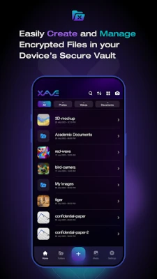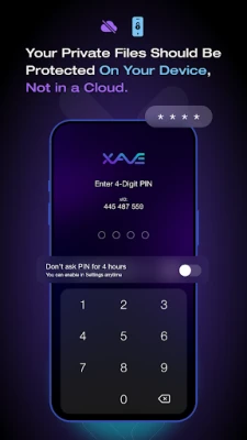 Xave is Secure Encrypted Space on your device which allows you to store private and confidential data locally. This allows you to take your private data wherever you go. Furthermore, all files are encrypted at rest on your device instead of the cloud. When the app is not in use, it is protected with several layers of authentication before it can be accessed. Anytime you leave the app, it will require you to re-enter your 4-digit PIN and uses biometric authentication if that feature has been enabled.