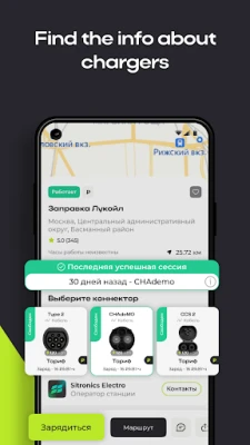 2. Plot a route to the station. The app selects the shortest route to the charge point, taking into account traffic jams. You can follow the route without using other apps.