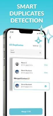 - Merge Duplicate Contacts wether by Name or Number, keep everything clean and all contact details in one place.