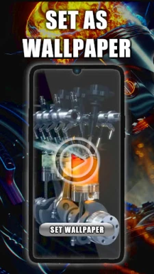 Over 1000 moving wallpapers for screens up to 720x1280 px; more than 1000 Full HD for the screen 1080x1920 px; over 500 for smartphones with 2K screen 1440x2560 px, more than 100 for 4K display 2160x3840 px. Check this v6 engine background video collection and personalize your device like internal mechanical device or combustion engine screensaver, this app its also live photo!