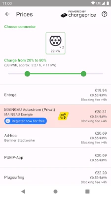 - Integrated price comparison using Chargeprice.app (only in Europe)