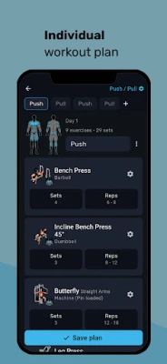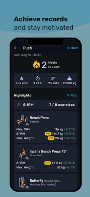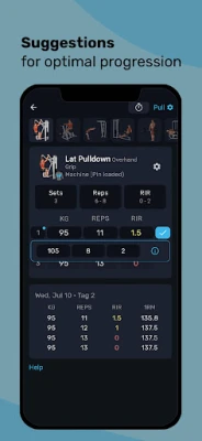 Receive progression recommendations based on your past performance to improve week by week and build muscle effectively.