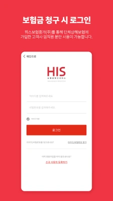 - 히스보험중개(주)를 통해 단체상해보험에 가입한 고객사 임직원과 가족의 보장내용 확인 및 보험금 청구서비스 위해 개발된 어플리케이션입니다.