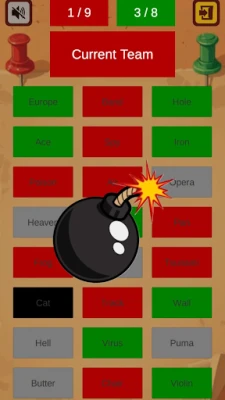 Two teams (red and green) compete to be the first to uncover all their areas on the map. Each team has a spy who knows their team's areas and gives a keyword and a number to guide their teammates. Players take turns selecting areas based on the spy’s clues. Βut they must be careful! A wrong guess or triggering the bomb could cost them the victory.